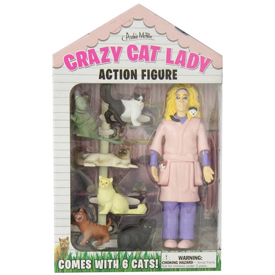 Dimensions: 5-1/4″ X1 Crazy Cat Lady Action Figure and 6 X 1″ Cats