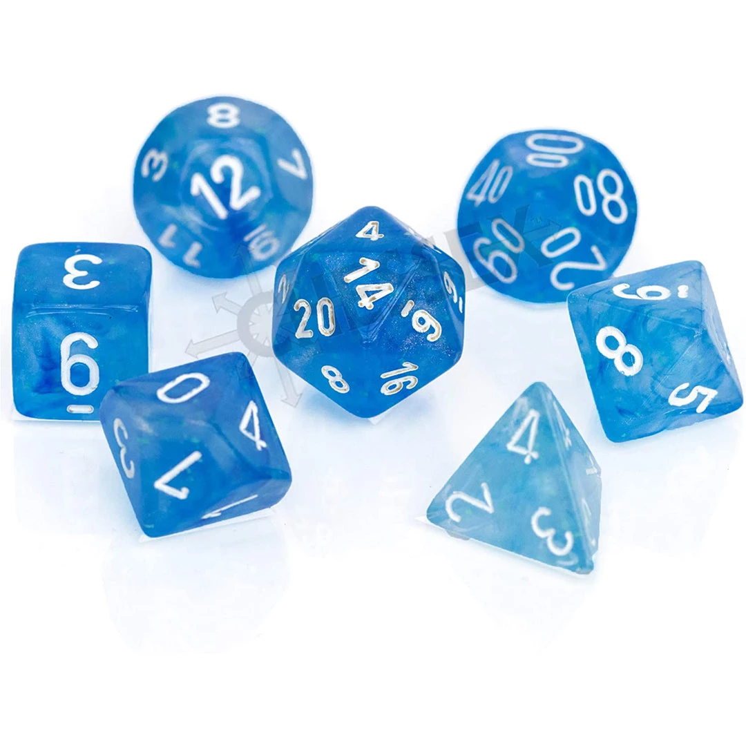 This is a Chessex 7 Set Polyhedral Dice Borealis Sky Blue White Luminary CHX27586 made by the good people over at Chessex.