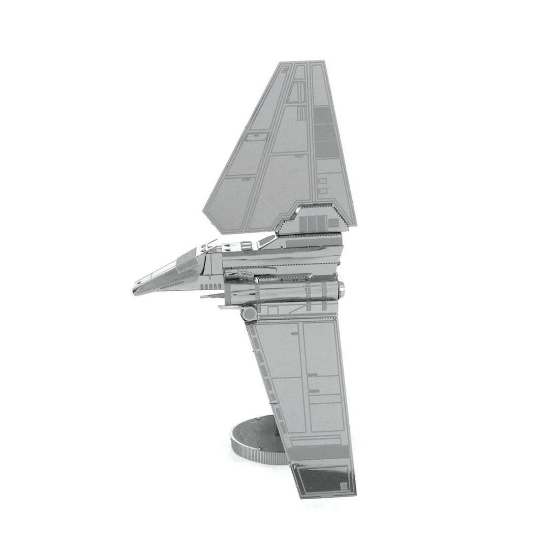 An elegant example that stands apart from typical brutish Imperial engineering, the Lambda-class shuttle is a multi-purpose transport used in the Imperial Starfleet. The Empire pressed the shuttle into service for both cargo ferrying and passenger duty. Even the Empire’s elite, like Darth Vader and the Emperor Palpatine used these shuttles. It has three wings: a stationary center foil and two articulated flanking wings. When in flight, the side wings fold out for greater stabilization. When landing, the wings fold in, shrinking the vessel’s silhouette. The well-armed vessel has two forward-facing double laser cannons, two wing-mounted double cannons, and a rear-facing double laser cannon. It is equipped with a hyper drive.