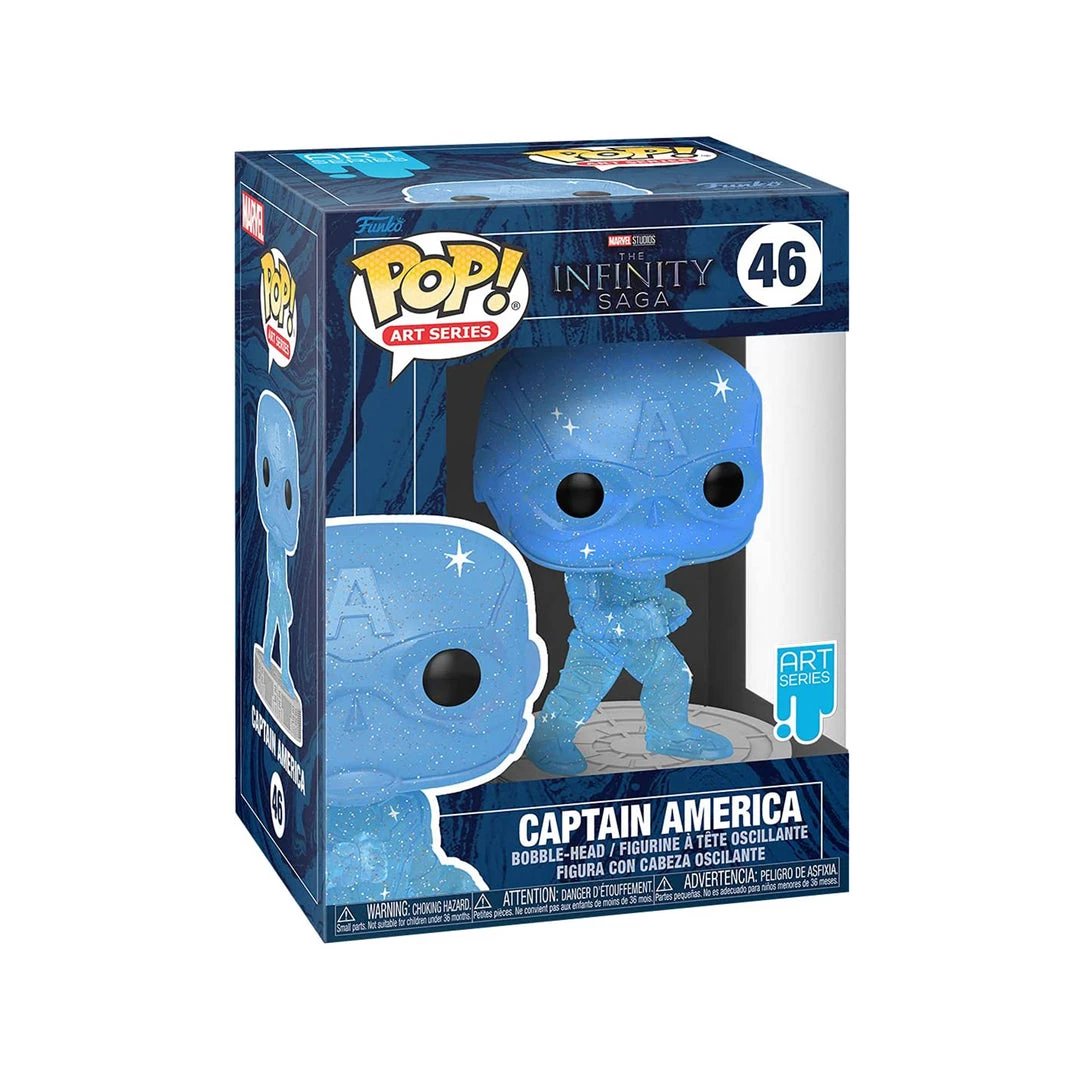 This is a specialty Artist’s Series Captain America figure that stands roughly 4.75 inches tall and comes in a premium Plastic POP protector. Each POP will have slight variations in design.