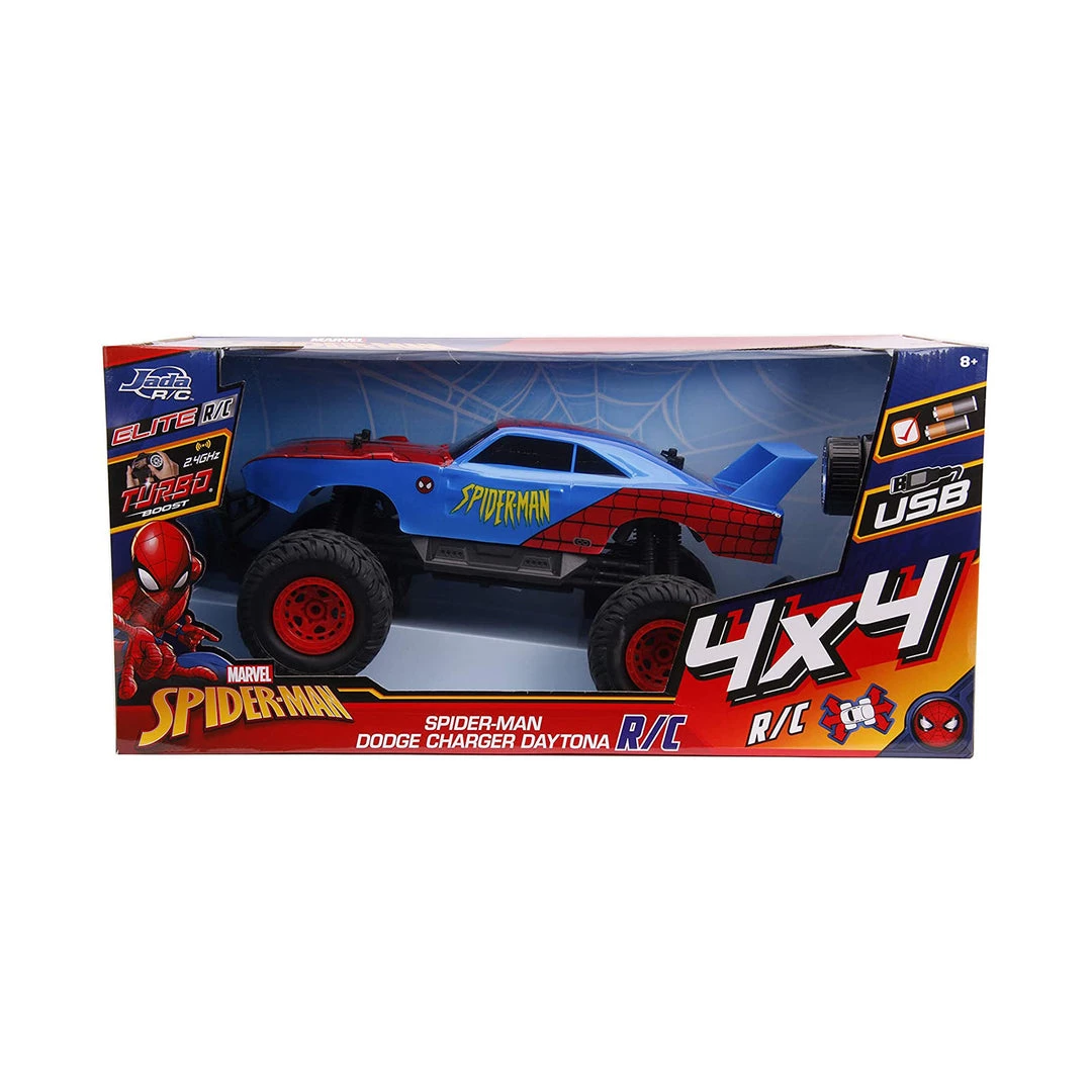 This is a Marvel Spider-Man Dodge Charger Daytona 4×4 RC Car produced by the good folks over at Jada.