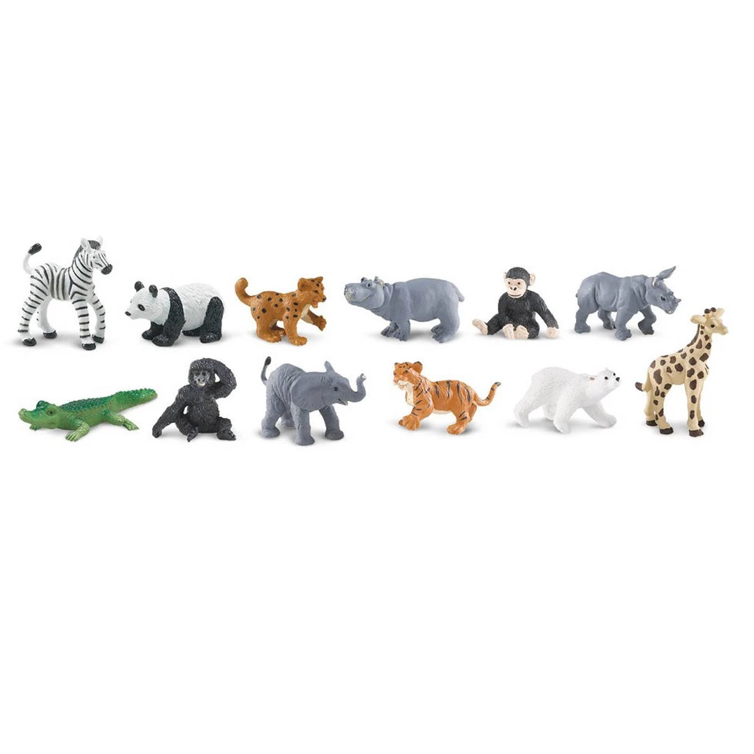 The Zoo Babies Bulk Bag Mini Figures set comes with 48 baby zoo animal figures. They’re hand painted and look great. TheZoo Babies Bulk Bag Mini Figures set includes multiples of these animals: Zebra, Panda, Leopard, Chimpanzee, Hippo, Rhino, Alligator, Gorilla, Elephant, Tiger, Polar Bear, and Giraffe.