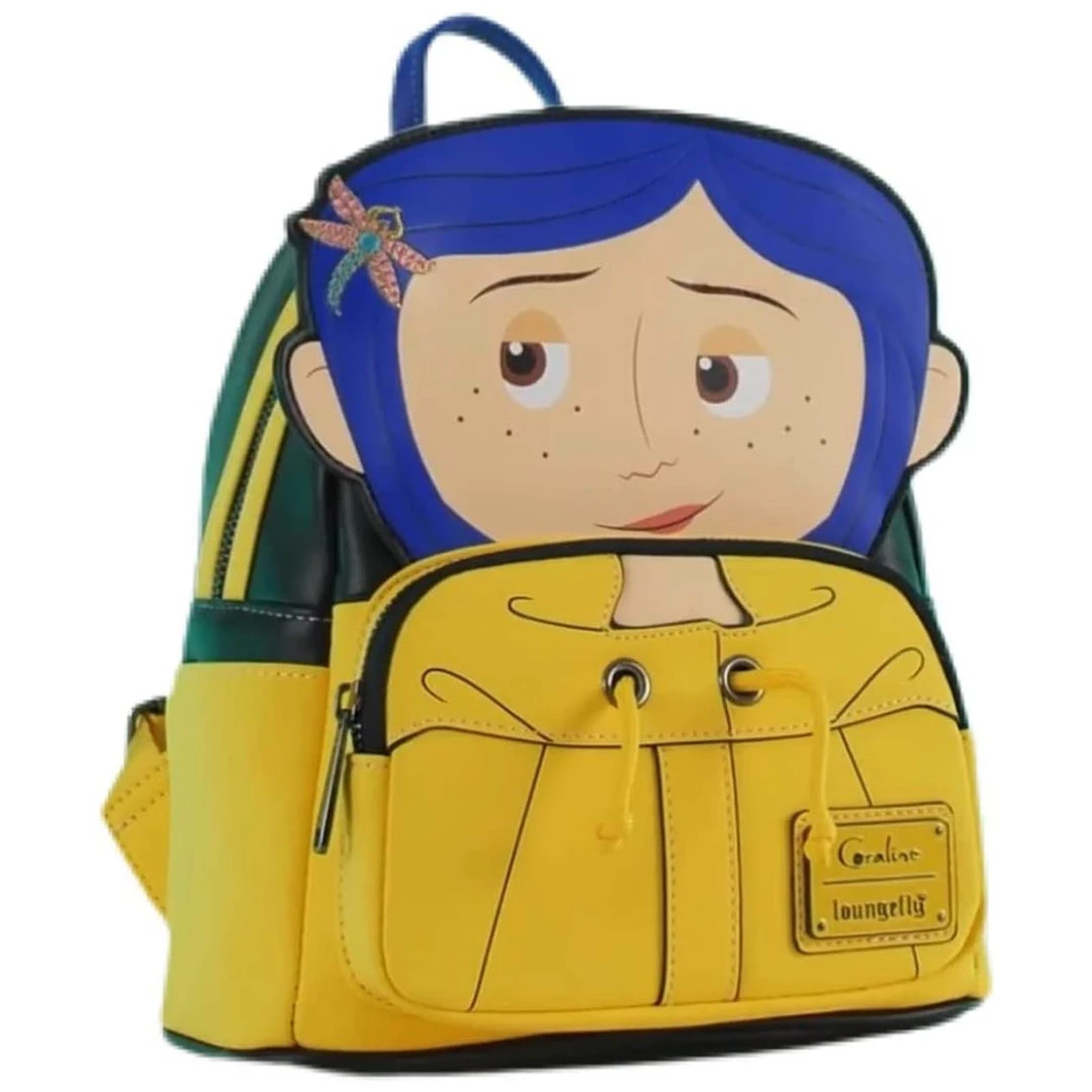 This is a Laika Coraline Rain Coat Cosplay Mini Backpack. This great-looking bag is produced by Loungefly. Loungefly is well known for making high-quality accessories.