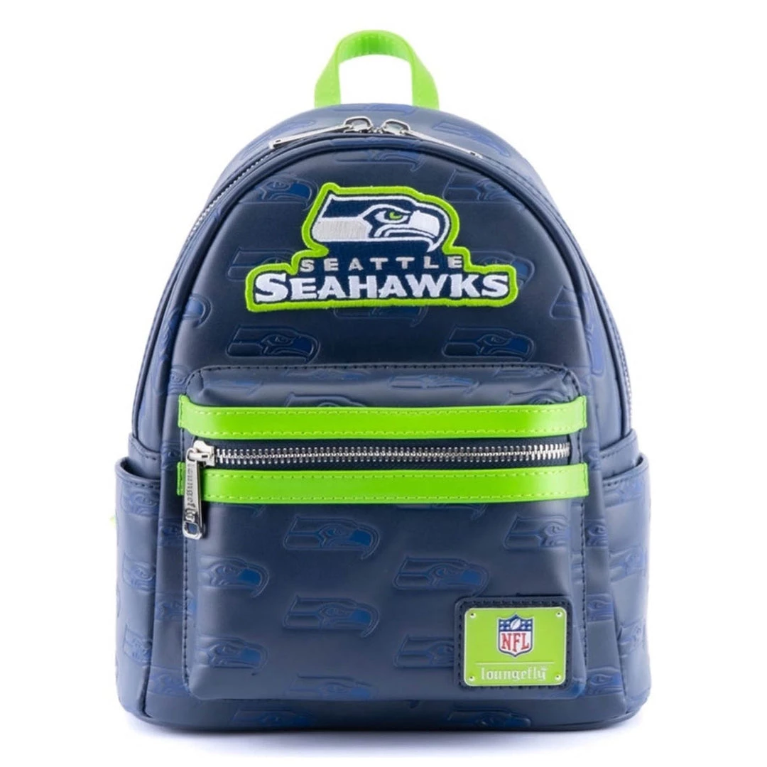 This is a NFL Seattle Seahawks Logo Mini Backpack. This great-looking bag is produced by Loungefly. Loungefly is well known for making high-quality accessories.