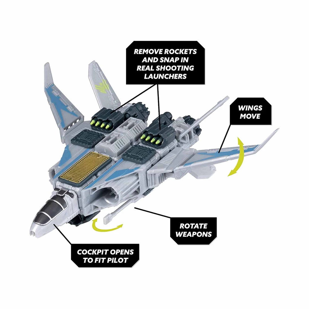 Now YOU can Build to Battle! Snap Ships is a versatile building system for creating multiple crafts with action play, and all sets and pieces are interchangeable, so kids can build however they want. The Snap Ships set for Sabre includes instruction for three different builds that you assemble yourself and then engage in battle with real shooting weapon play! Sabre XF-23 Interceptor is impressively armed and agile, and it’s the main fighting ship against the Komplex. Klik, the newest member of the Forge, is the talented pilot who will take this ship on strike missions. With the mysterious UJU tech piece that’s included, Sabre will be even more impressive in the fight against the Komplex!