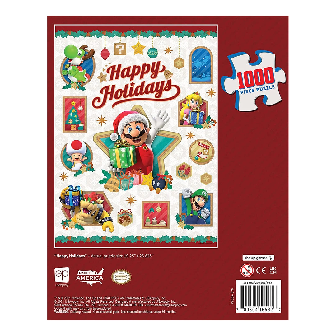 This is a Super Mario Happy Holidays 1000 Piece Puzzle made produced by USAopoly.