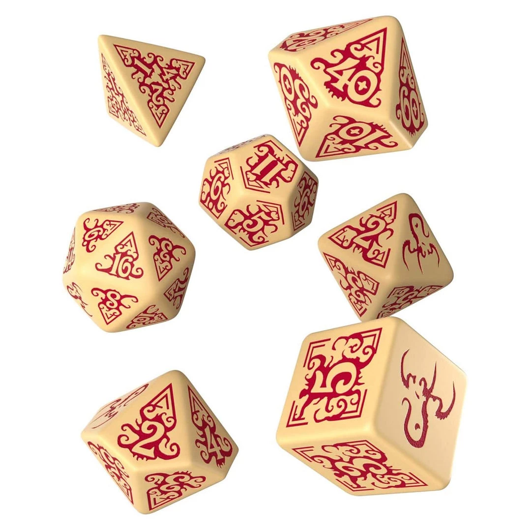 This is a Call Of Cthulhu Masks Of Nyarlathotep Roleplaying 7 Piece Dice Set made by the good people over at Q-Workshop.