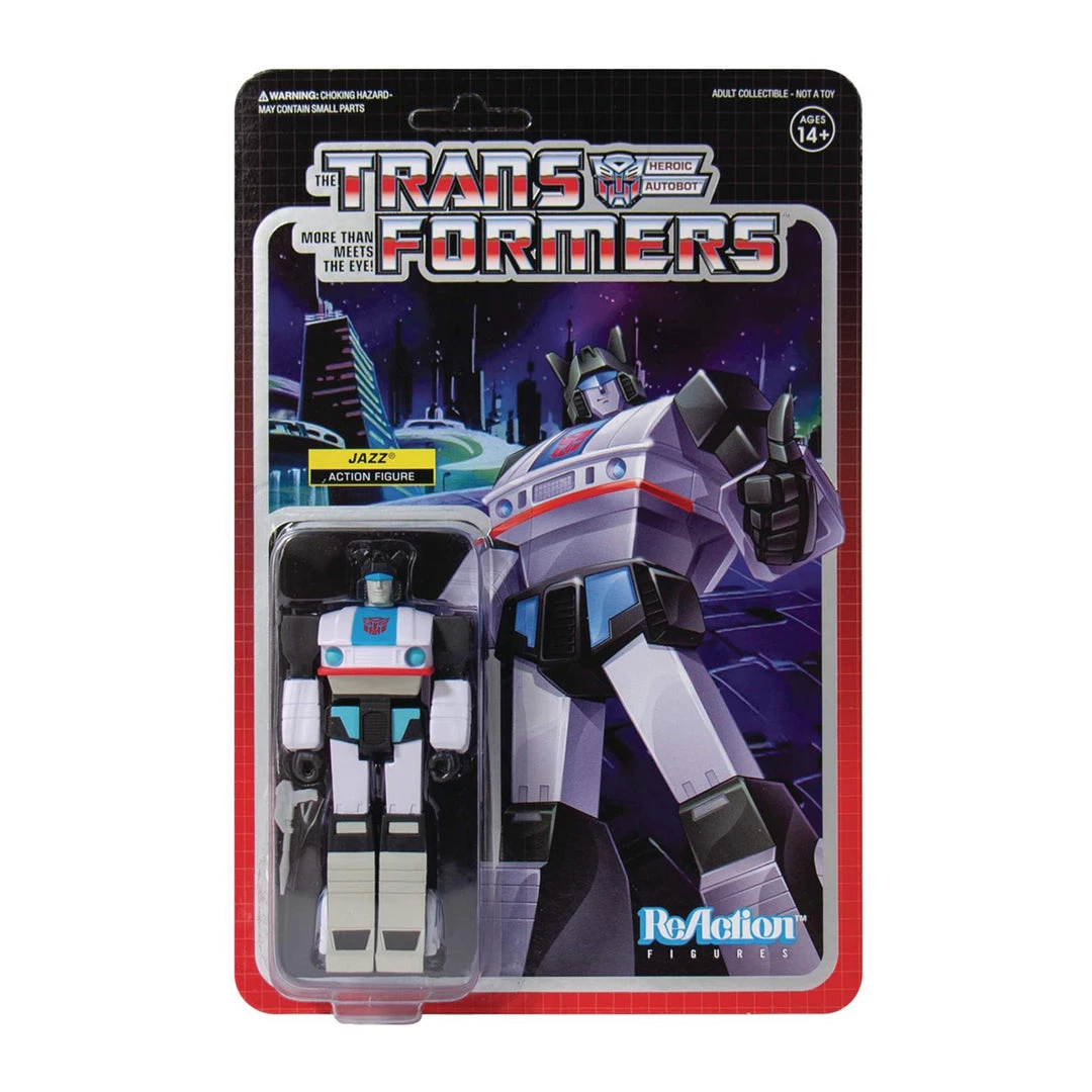 This is a Transformers Jazz Reaction Figure that is produced by Super7.
