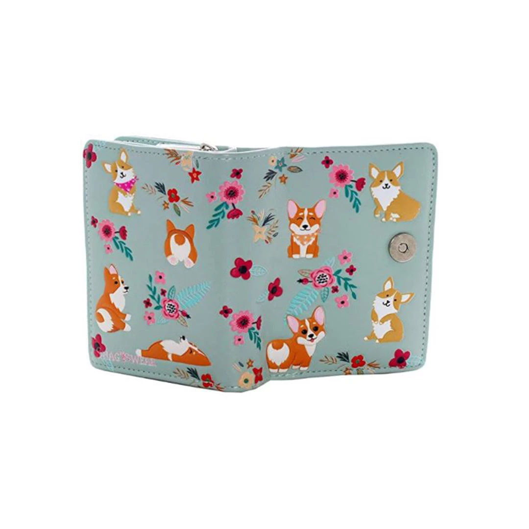 Dimensions: 4″ x 4.5″ X 1 Shagwear Aqua Corgi Pattern Small Wallet