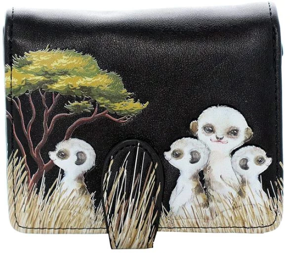 Dimensions: 4″ x 7.5″ X 1 Meerkats Large Black Zipper Wallet