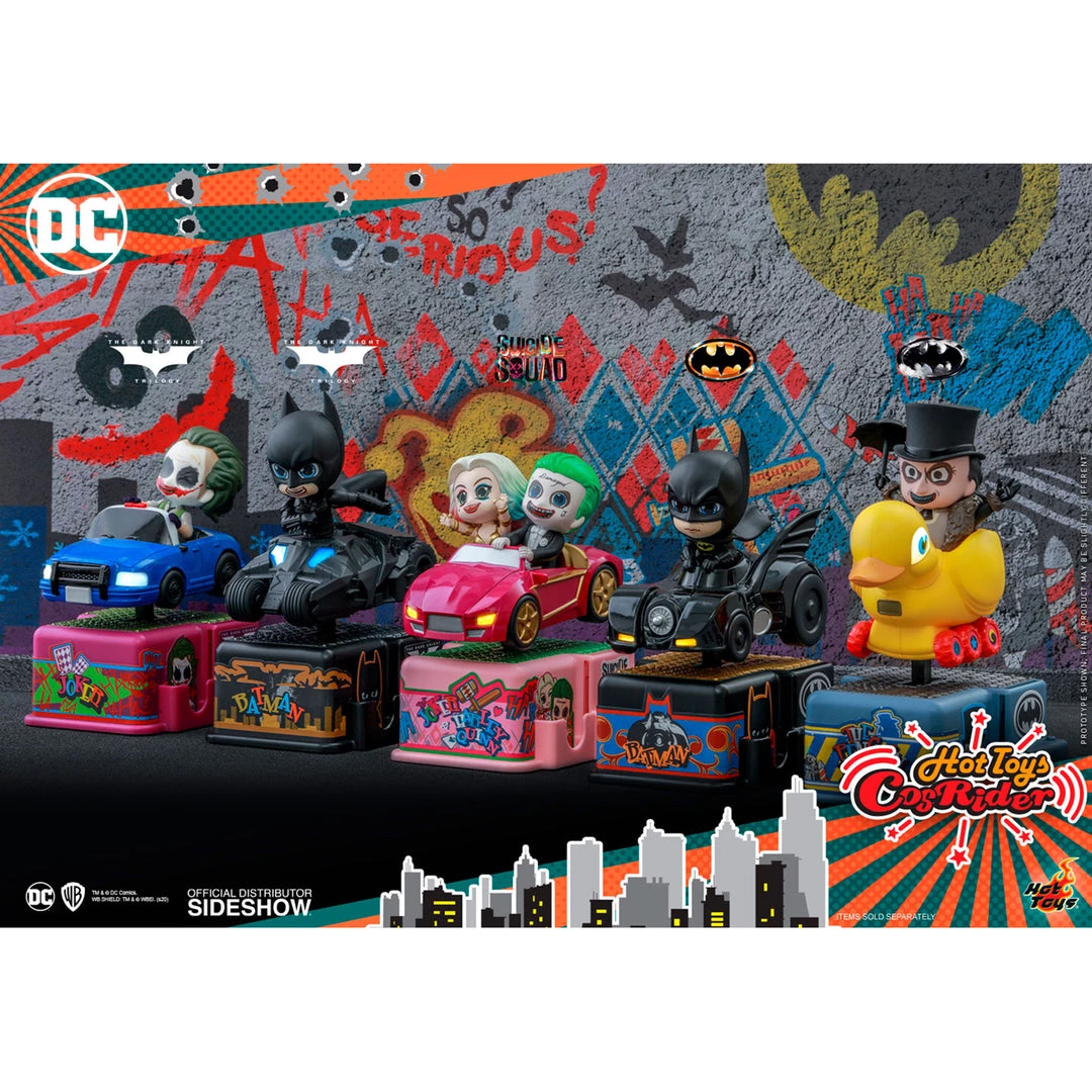 Combining the vintage coin-operated amusement ride in our childhood memories and the iconic driving scenes from the classic productions in DC universe, CosRider collectible has skillfully transformed the characters’ appearance and their distinctive vehicles into an adorable line-up.