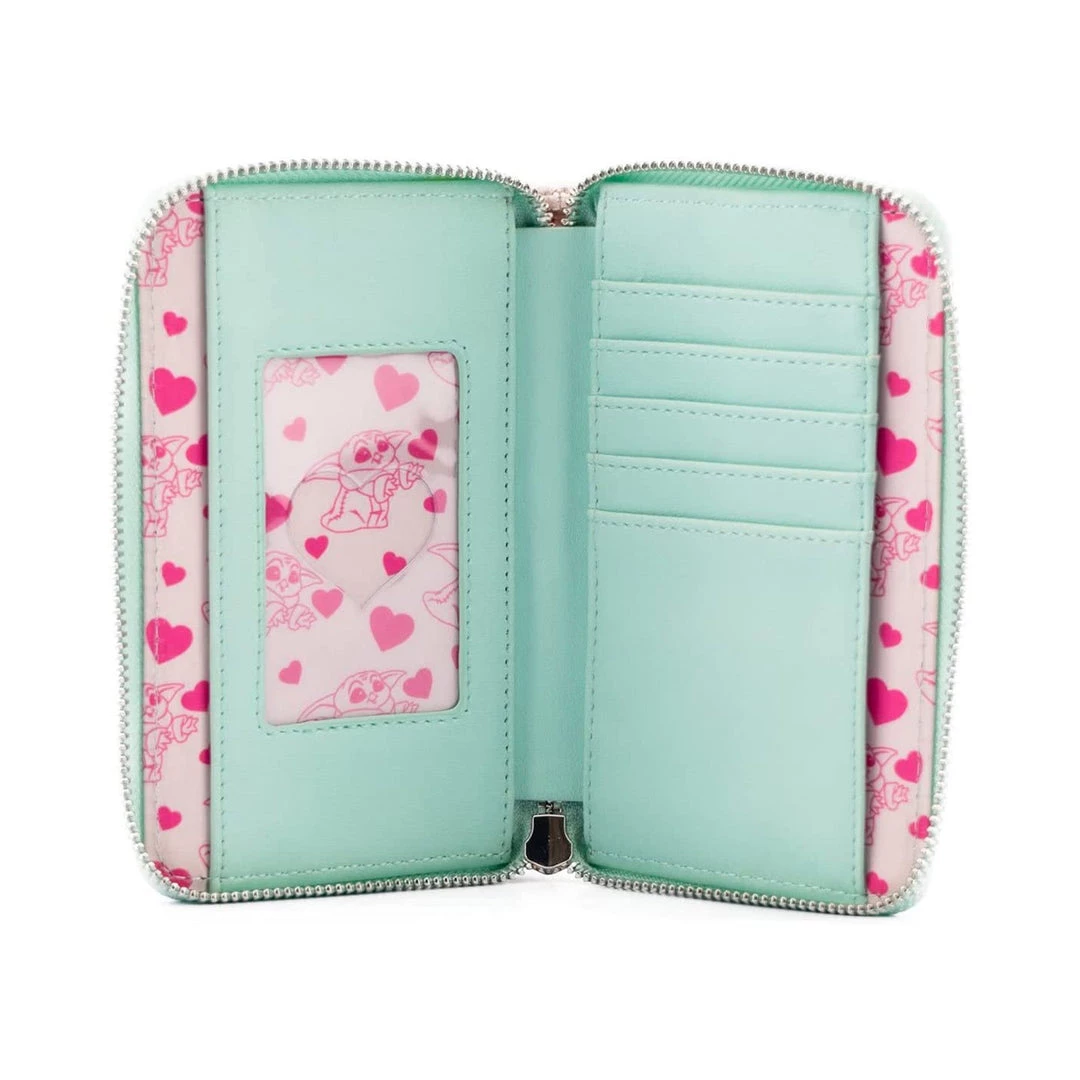This is a Loungefly Star Wars Mandalorian Grogu Valentines Zip Around Wallet. This great looking wallet is produced by Loungefly. Loungefly is well known for making high quality women’s wallets.